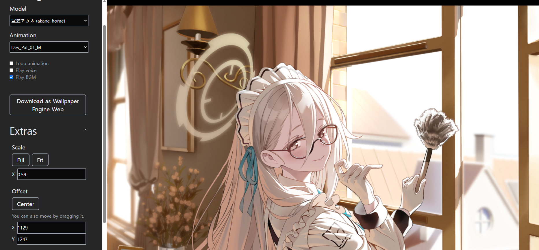 블루 아카이브의 리소스를 가지고 월페이퍼? 같은걸 만들수 있는 사이트인것 같다.