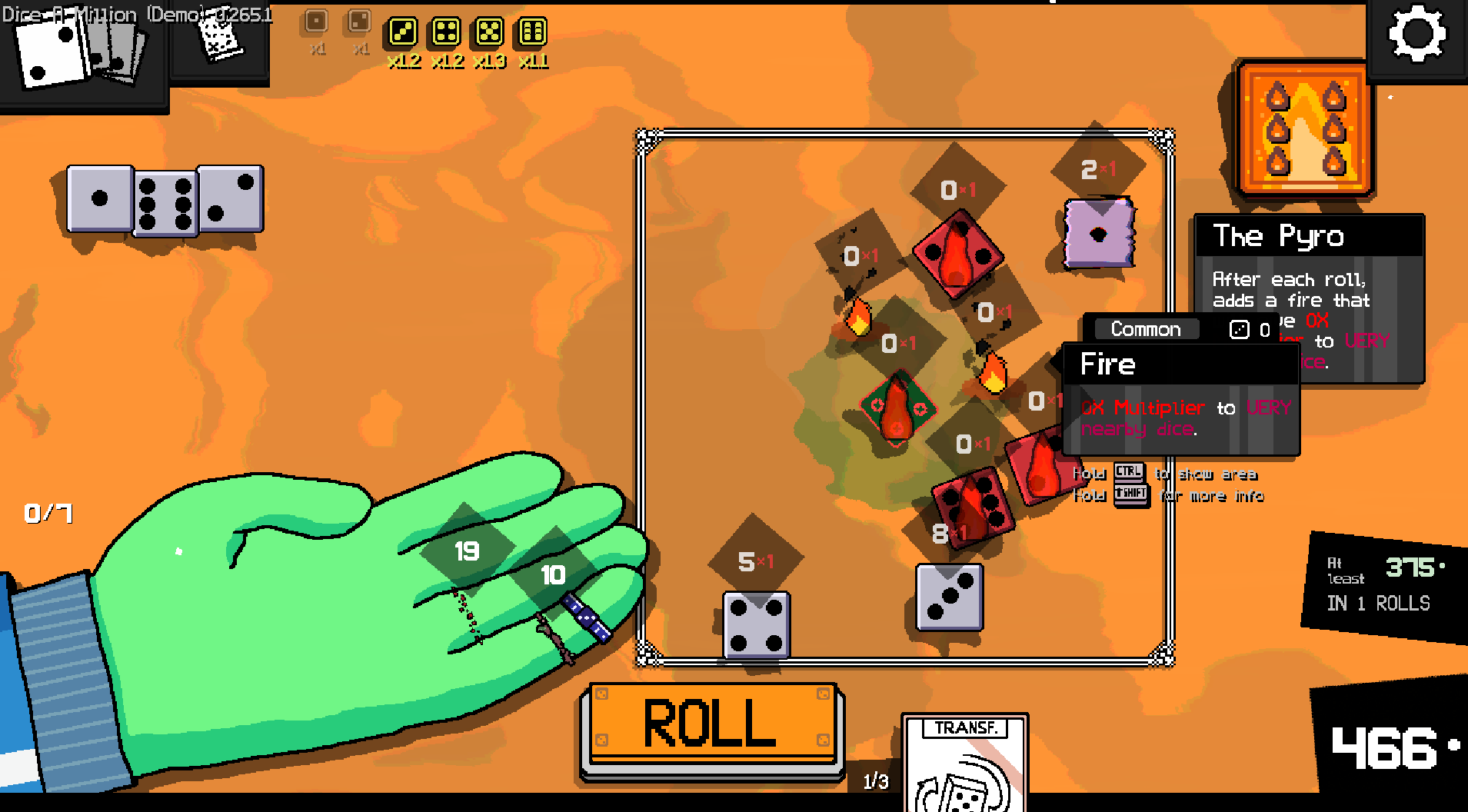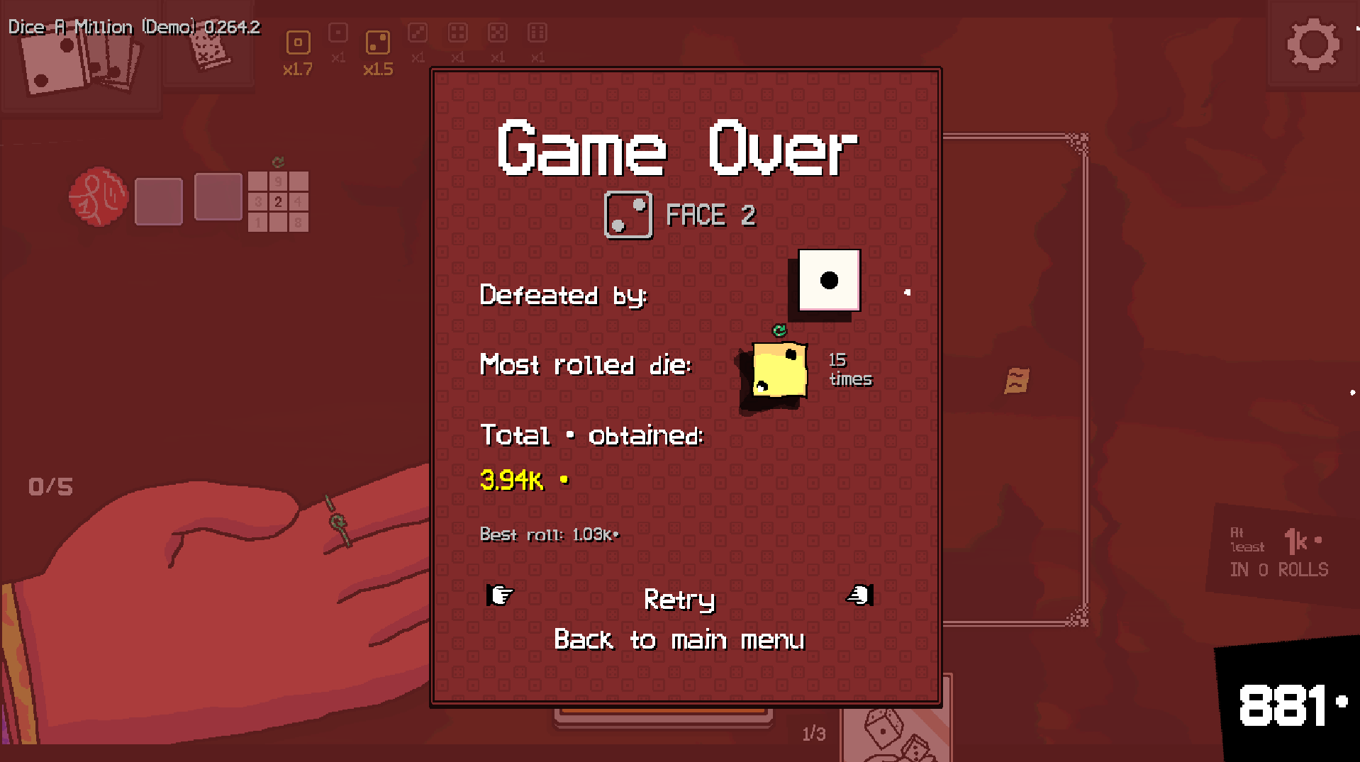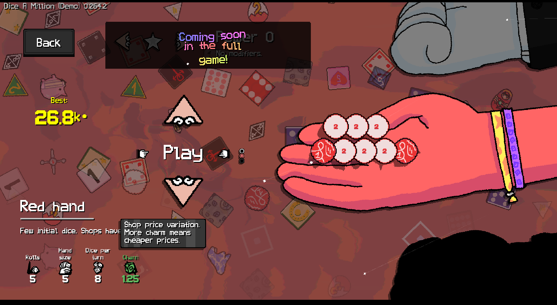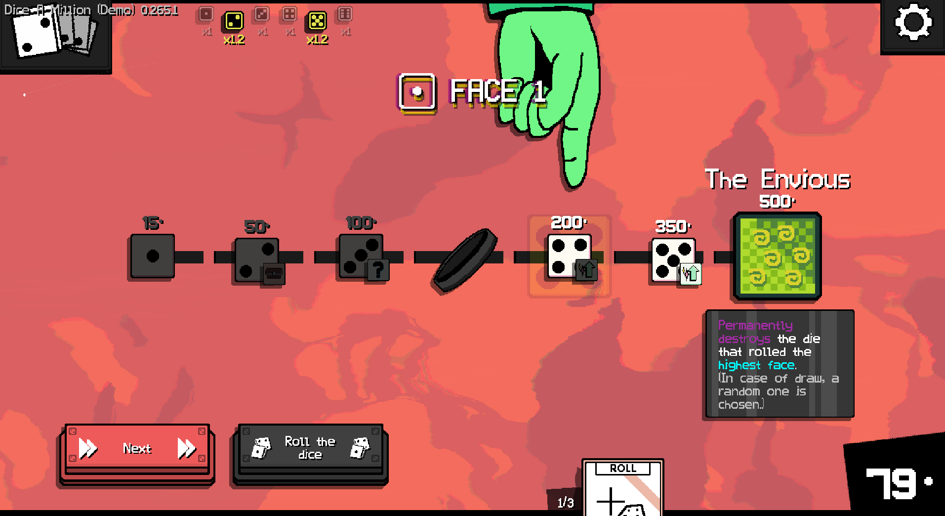 주사위의 여러가지 시너지를 잘 활용해서 돈을 모으는 로그라이크 게임이다.