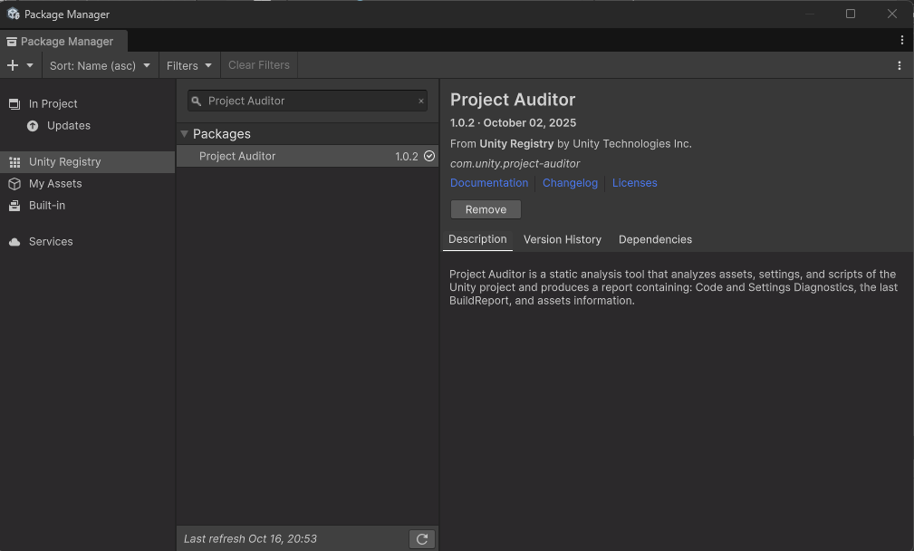 Unity 프로젝트 분석 (Project Auditor : Analyze your project )