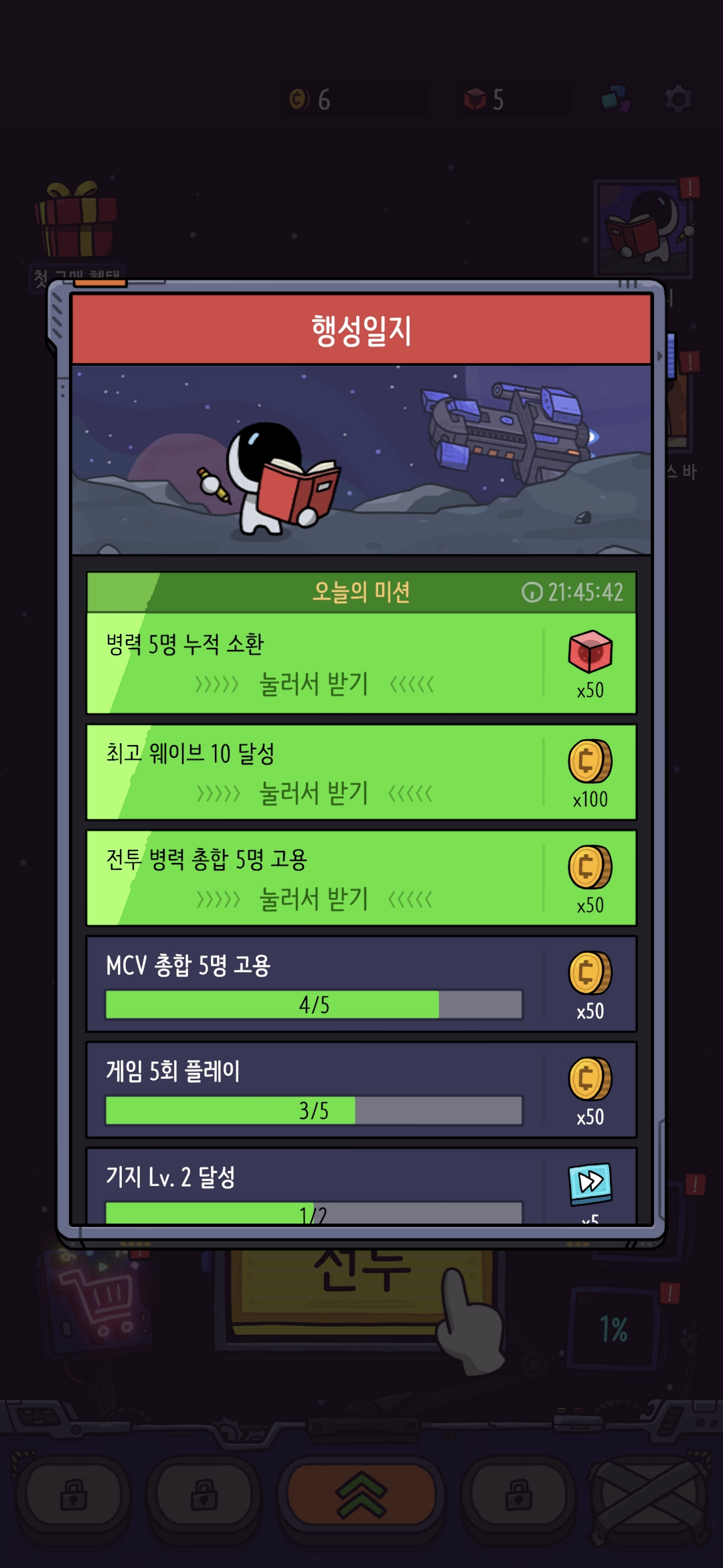 특정 Wave의 허들이 존재하기 때문에 조금 길게 오프라인보상, 미션을 수행하면서 연구를 최대한 진행하자.