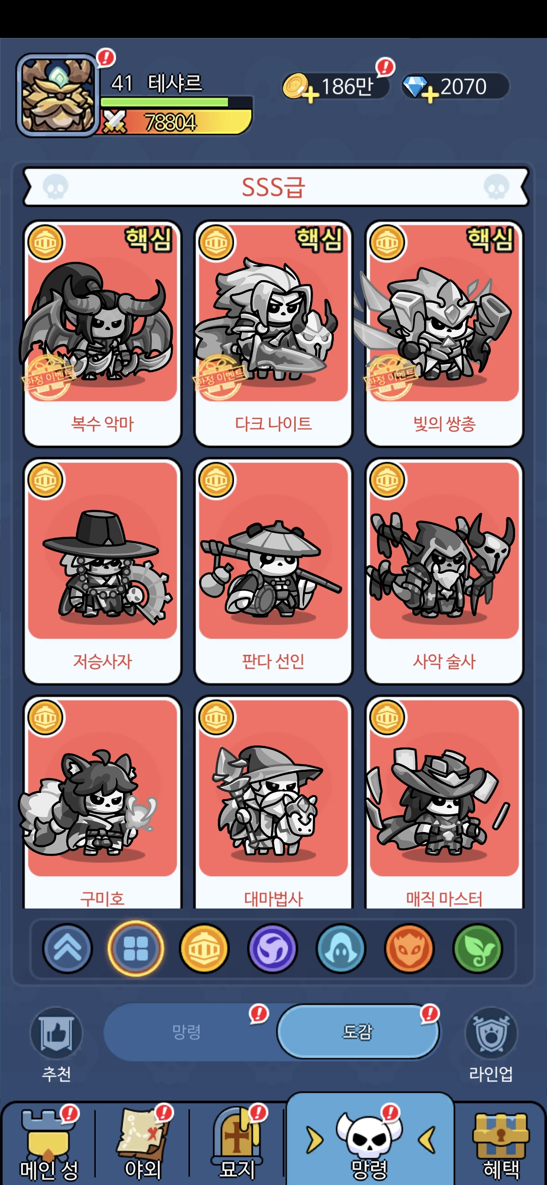 무덤속에서 깨어난 해골 망령을 군단으로 육성해서 다양한 콘텐츠를 즐기는 수집형 RPG이다.