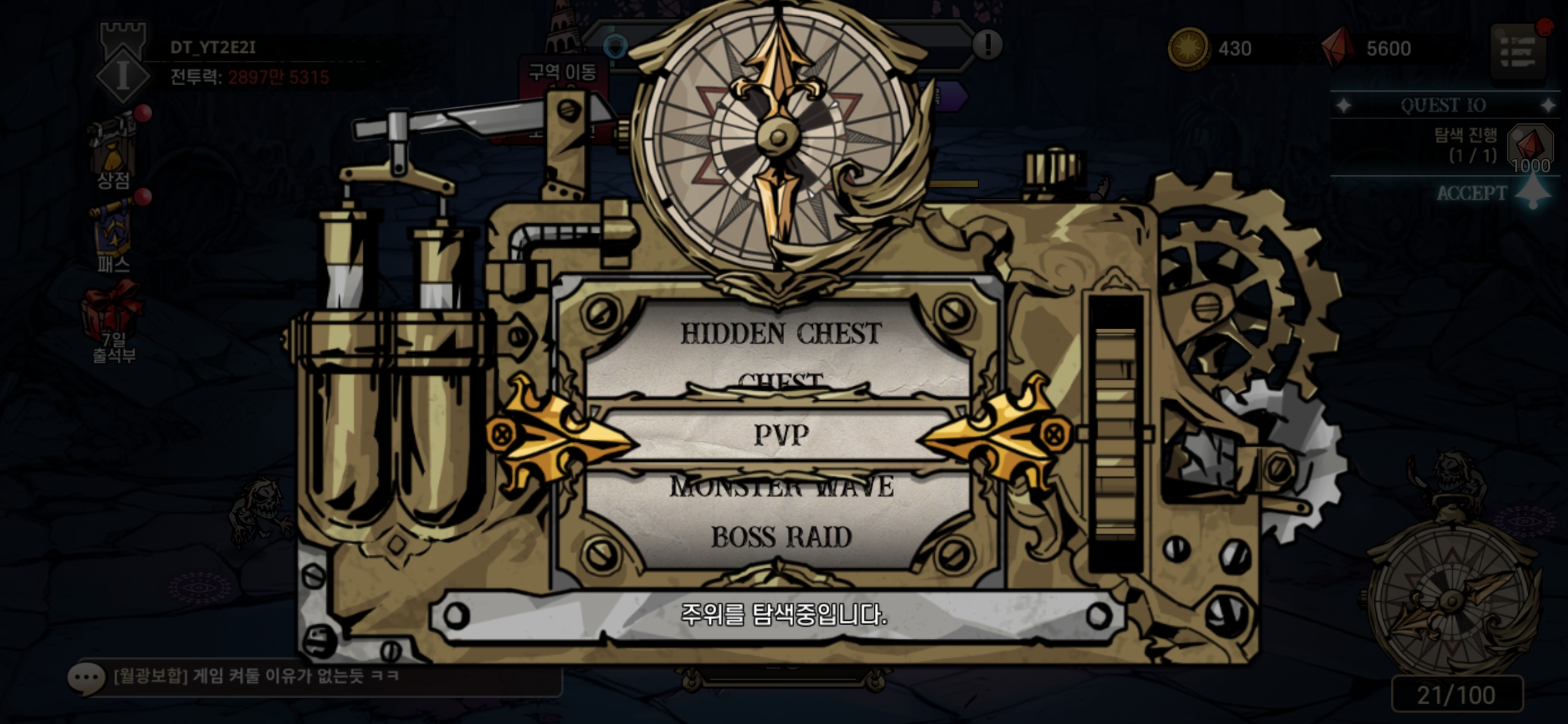 탐색은 여러가지 모드가 존재 한다. PVP, Boss Raid, Monster Wave 등
