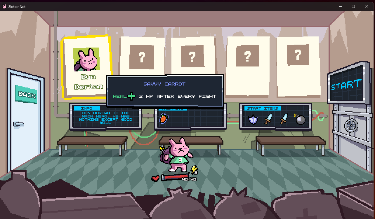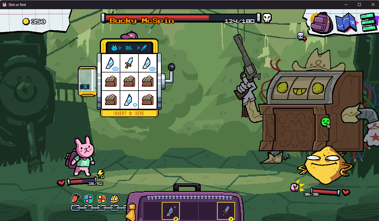 슬롯을 활용해서 로그라이크 형태로 진행하는것과 디자인 컨셉이 꽤나 찰떡이었다.