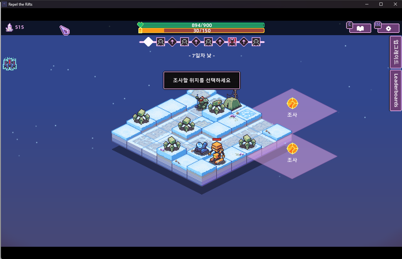 스테이지를 진행하다보면 조사를 하게되는데 디펜스하는 맵을 본인이 선택해서 가능하다.