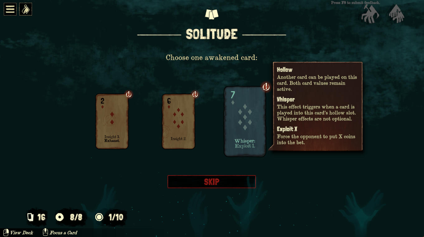 소지한 카드를 버리거나, 업그레이드, 상점 구매 등 선택이 가능하다.
