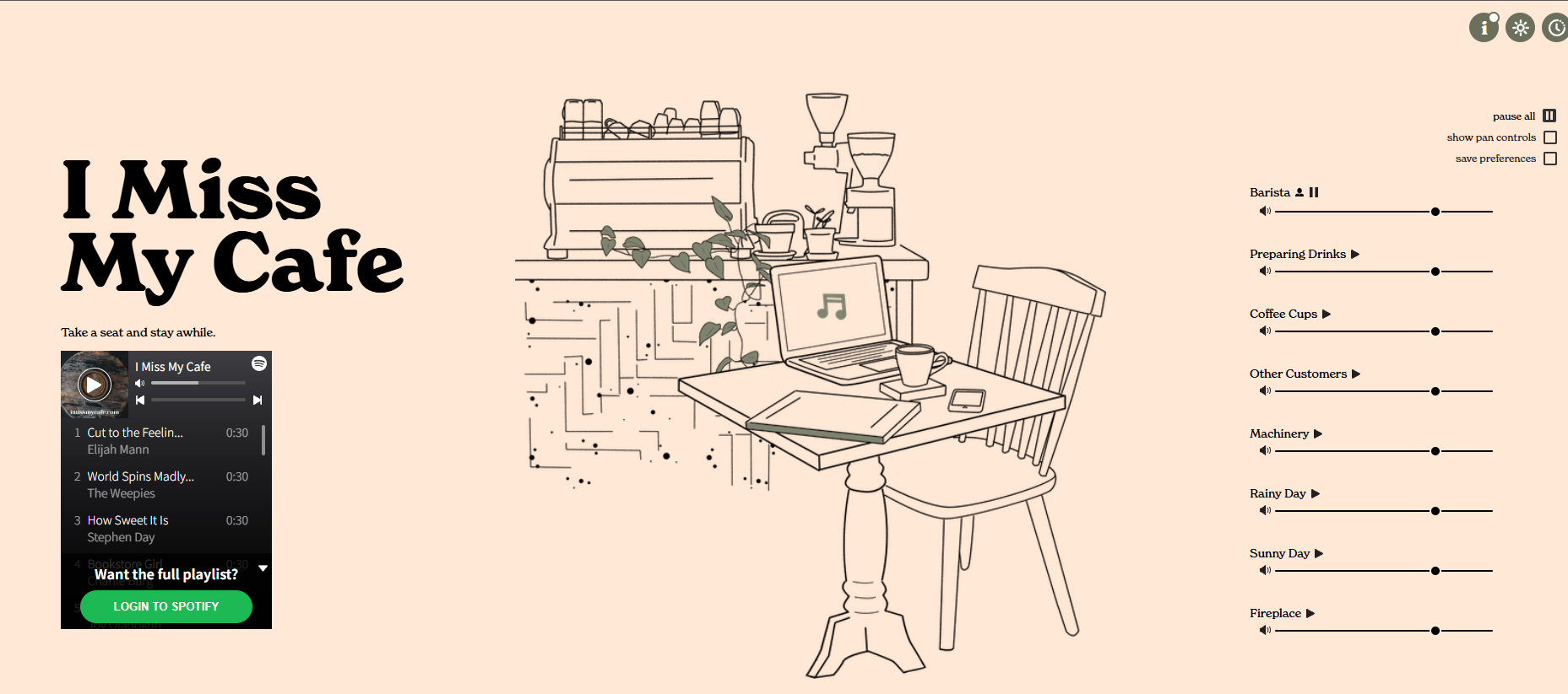 카페에서 들리는 사운드들을 계속 플레이해주는 사이트로