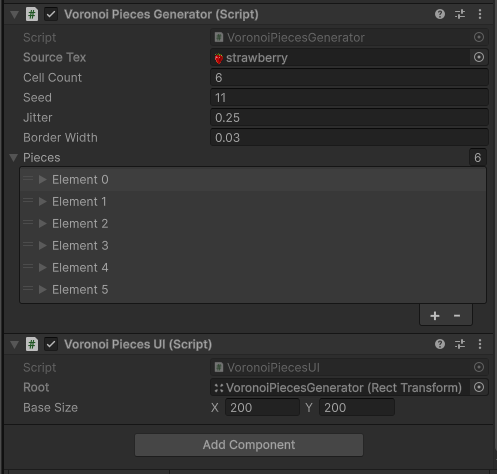조각을 정해진 형태로 쪼개는게 아니고 보로노이 다이어그램을 사용해서